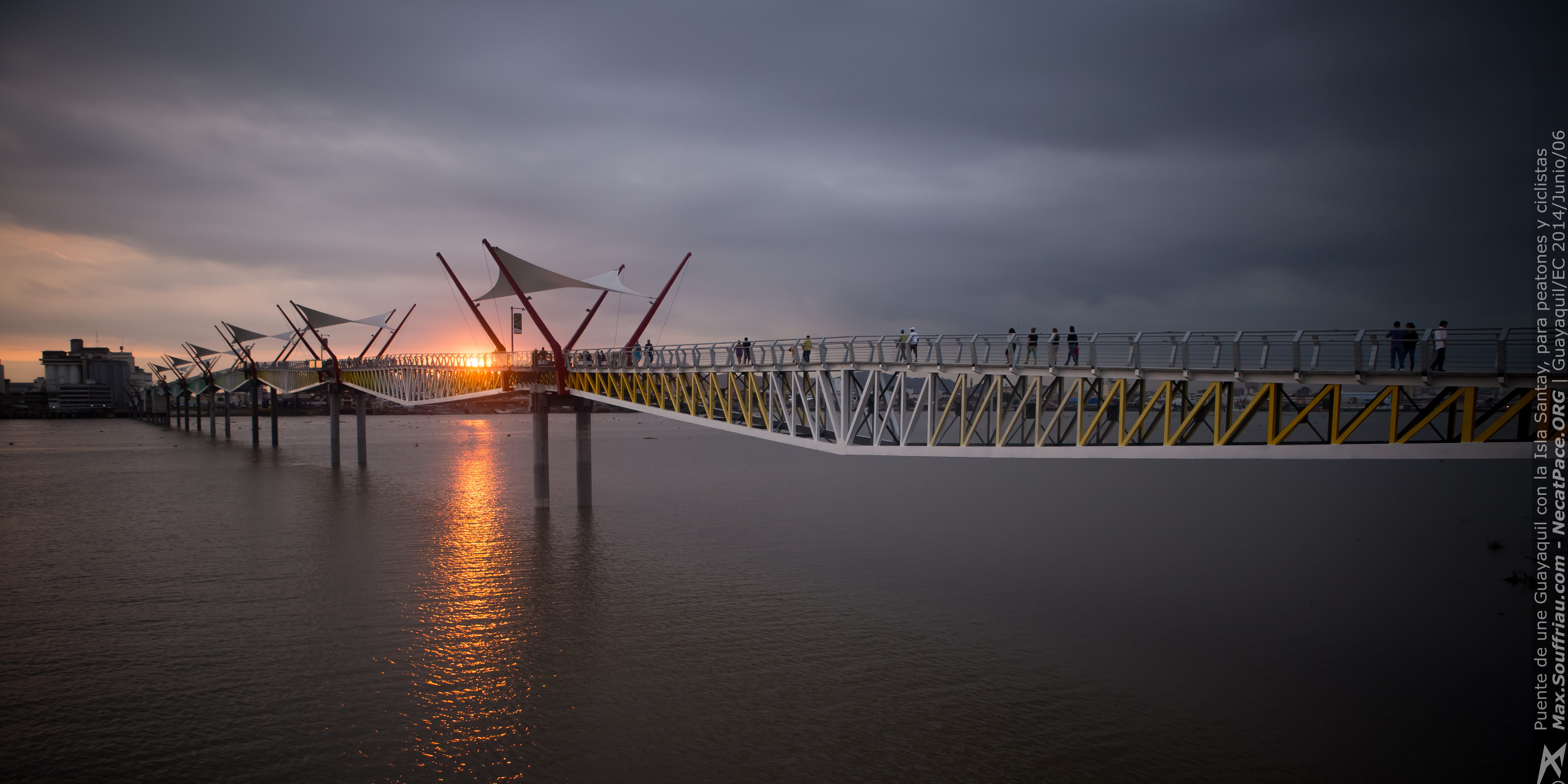 Actualmente Guayaquil tiene acceso a la Isla Santay, por medio de este puente que esta diseñado no para autos, se lo puede cruzar en bicicleta o caminando pero tiene 840 metros, y una parte es levadizo, aunque no se a que hora lo levantan.